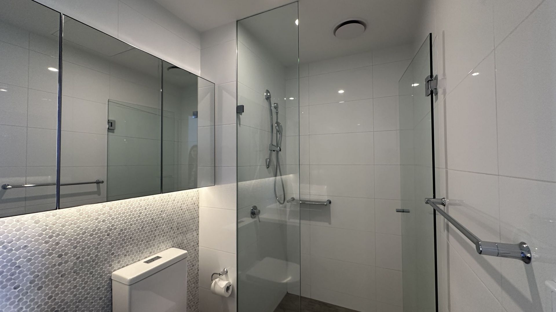-Two bedrooms both with mirrored BIRs, main with ensuite and the second serviced by a central bathroom