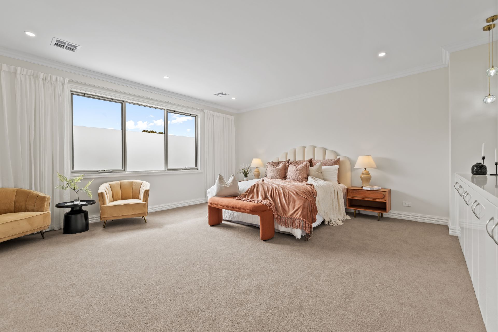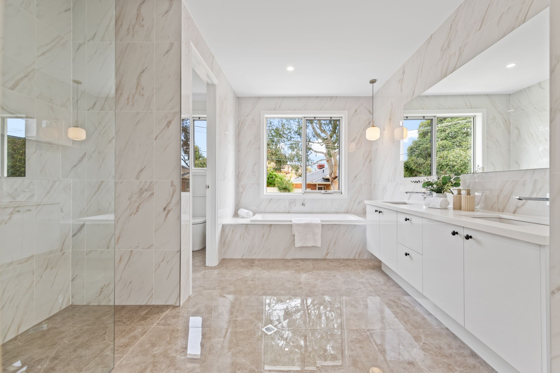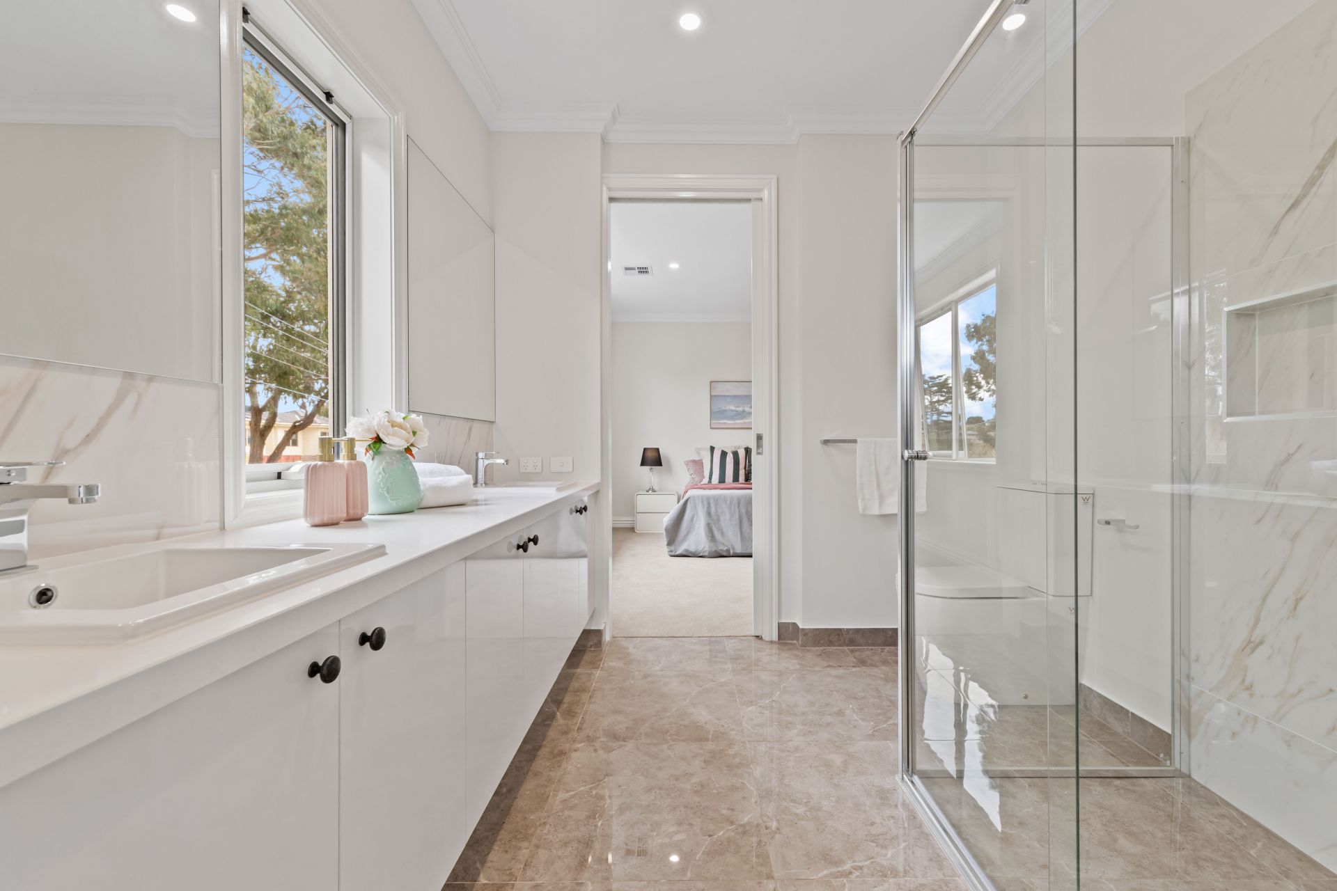 Catering for the family's accommodation needs, there are five robed bedrooms plus an additional bedroom/office, including a ground floor guest bedroom with walk-in-robe and ensuite, a lavish master suite featuring a large walk-in-robe and luxurious dual vanity ensuite (with bath), two bedrooms sharing a central ensuite and an additional bedroom enjoying a private ensuite.