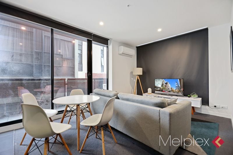 This amazing furnished apartment boasts open plan living and dining, sleek kitchen fully equipped with integrated appliances including gas stove, electric oven and ample cupboard spaces, two double bedrooms both with built in robes serviced by a modern central bathroom.