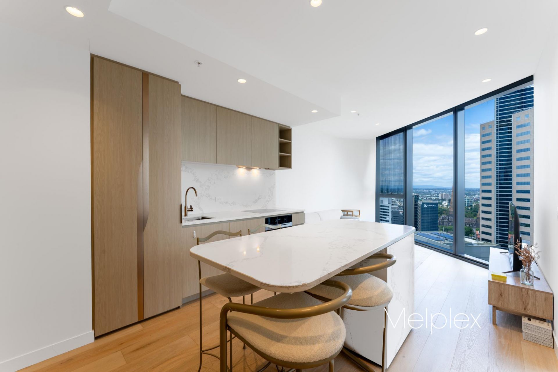 This luxury one-bedroom with one-study apartment showcases breathtaking city and garden views and is designed for refined inner-city living. Featuring a spacious open-plan living and meals area, the gourmet kitchen is fully equipped with top-of-the-range European appliances, ample storage, and elegant marble benchtops. The generously sized bedroom includes built-in robes and is complemented by a sleek, modern bathroom, along with a European laundry.