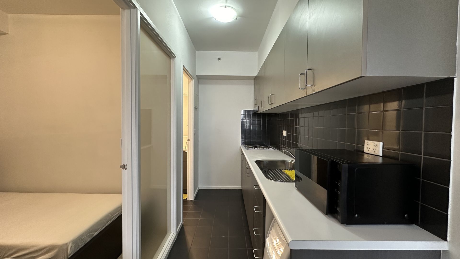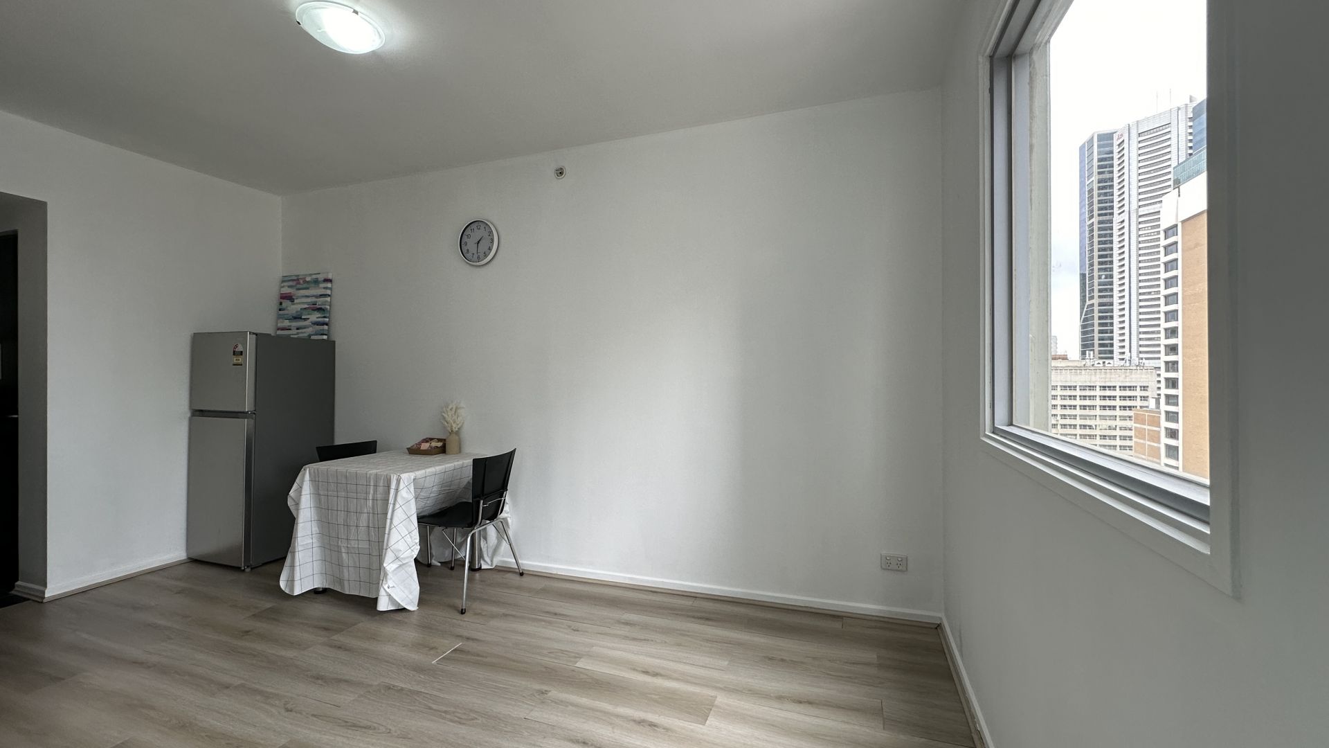 Located on the 17th floor with fantastic views of the city skyline, apartment 1707 boasts open plan lounge and dining area with plenty of natural light, sleek kitchen equipped with modern appliances and ample storage, two well-appointed bedrooms with built-in robes offering peaceful sanctuaries for rest and relaxation, and a good-sized bathroom with large shower and mirror.