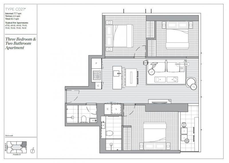 All the three bedrooms are generously sized with built-in robes, while the stylish bathrooms showcase contemporary fittings and a clean, modern aesthetic.