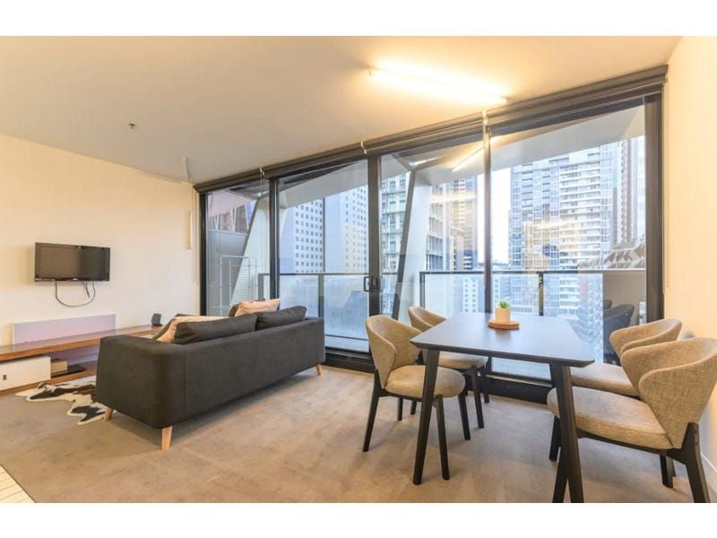 Bathed in natural light, the spacious open-plan living and dining area flows effortlessly into a sleek, stone-topped kitchen featuring stainless-steel appliances, including a brand-new Fisher & Paykel dishwasher. Floor-to-ceiling glass doors open to reveal a captivating backdrop-take in the uninterrupted views spanning the bay, Melbourne Central's Shot Tower, the Arts Centre Spire, and the Royal Botanic Gardens.