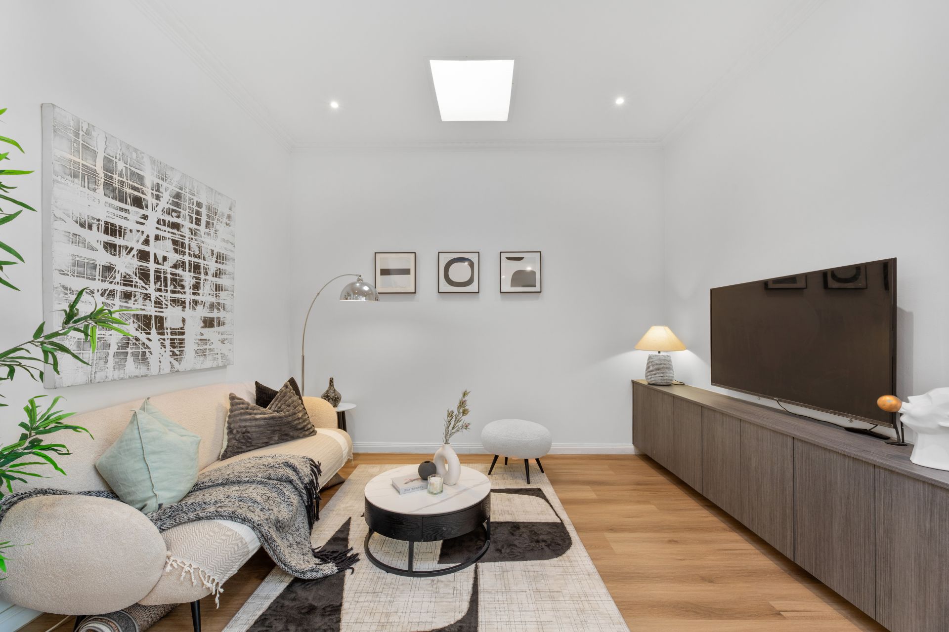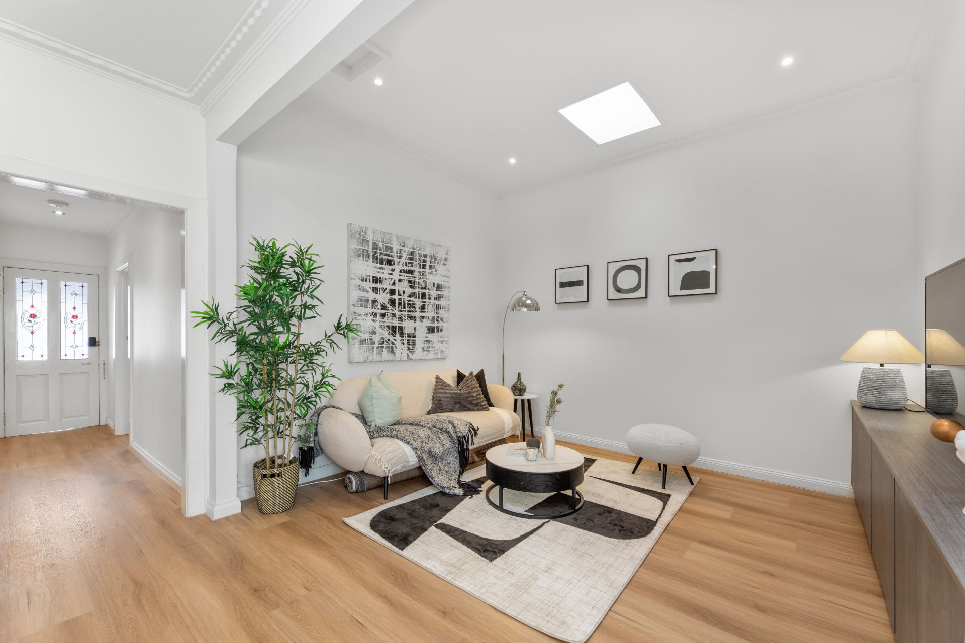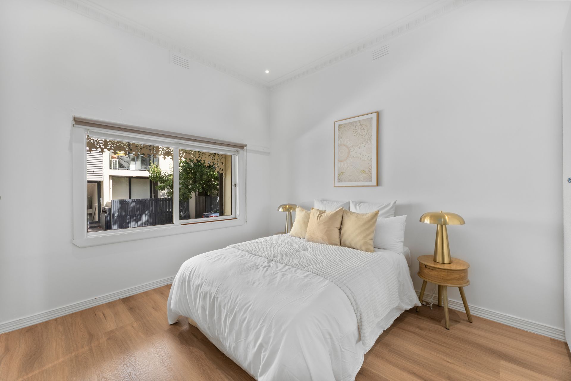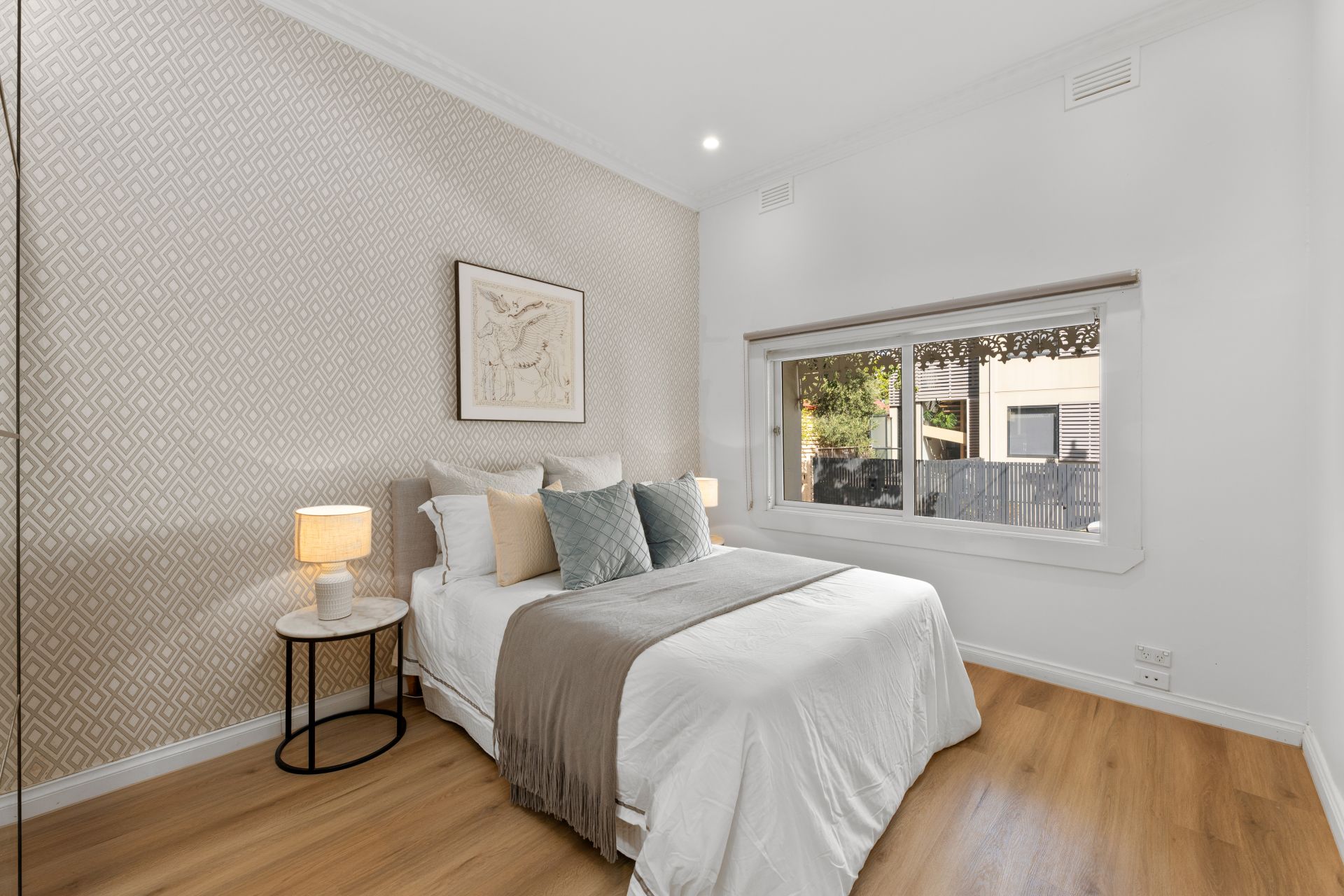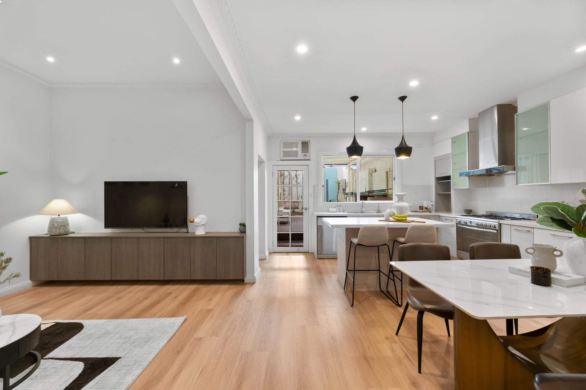 Enhanced by glorious high ceilings, the inviting interior is complemented by stylish flooring that flows through to the generous living and dining domain. The indulgent kitchen has been custom designed with premium finishes, featuring full set of Italian-designed and imported cabinetry, 900mm Omega appliances, newly installed dishwasher and an island breakfast bench. Glass door extends the living space outdoors to a decked courtyard with an alfresco ceiling and gated rear laneway access.